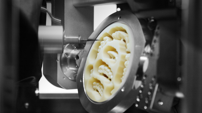 12 ATC (Automatic Tool Changer)가 탑재되어 있어 각각의 재료에 맞는 툴을 자동으로 선택하여,가공물의 특징에 맞게 길이와 디자인의 변화를 주어, 밀링시간과 가공 결과를 최적화하였습니다.